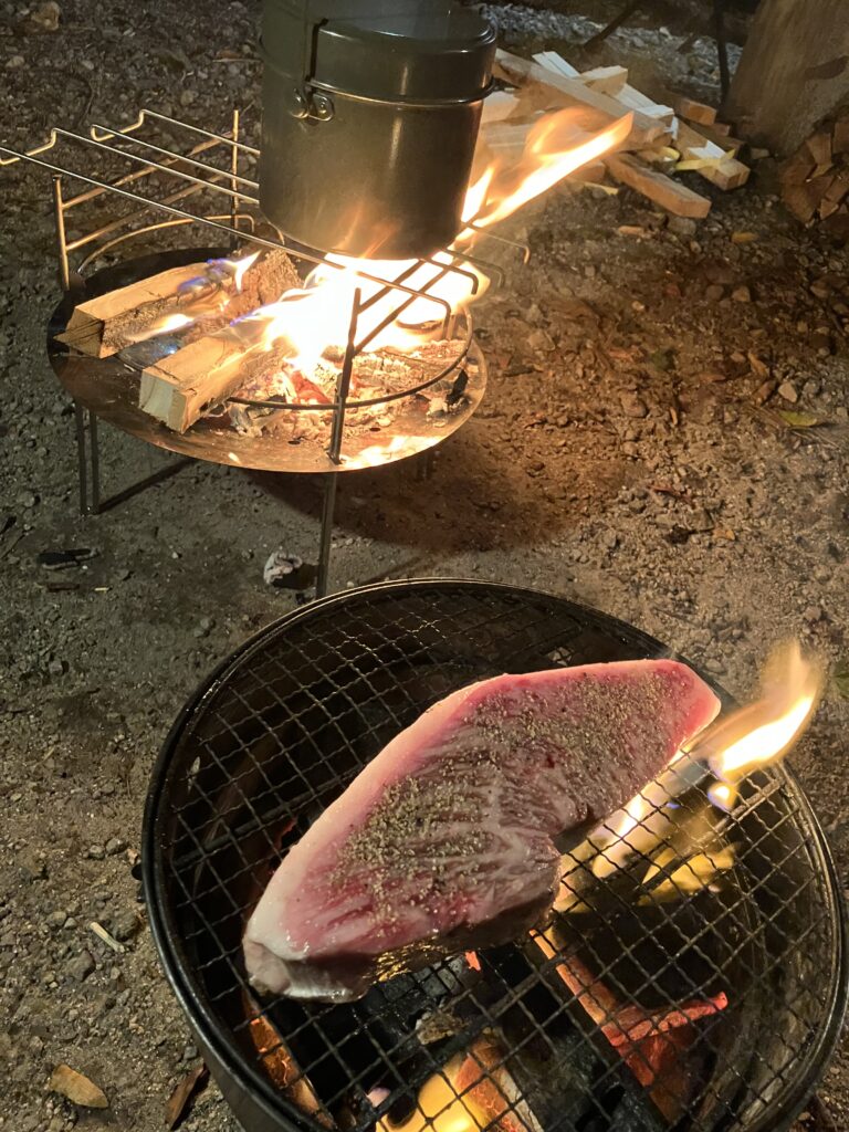 長野の精肉店で購入した肉でキャンプ飯
