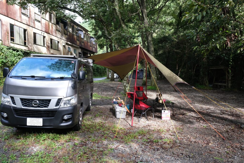 この日の宿泊地に「河津七滝オートキャンプ場」を選んだ理由は、24時間入浴可能な温泉があること。到着時間が遅くなっも、夜中に静かに入ることもできるし、朝風呂も可能なのはありがたい。