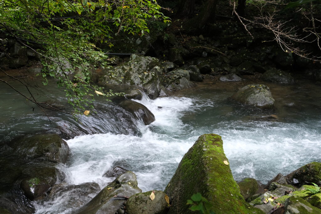 キャンプ場は荻ノ入川沿いにあり、木々に囲まれた環境。