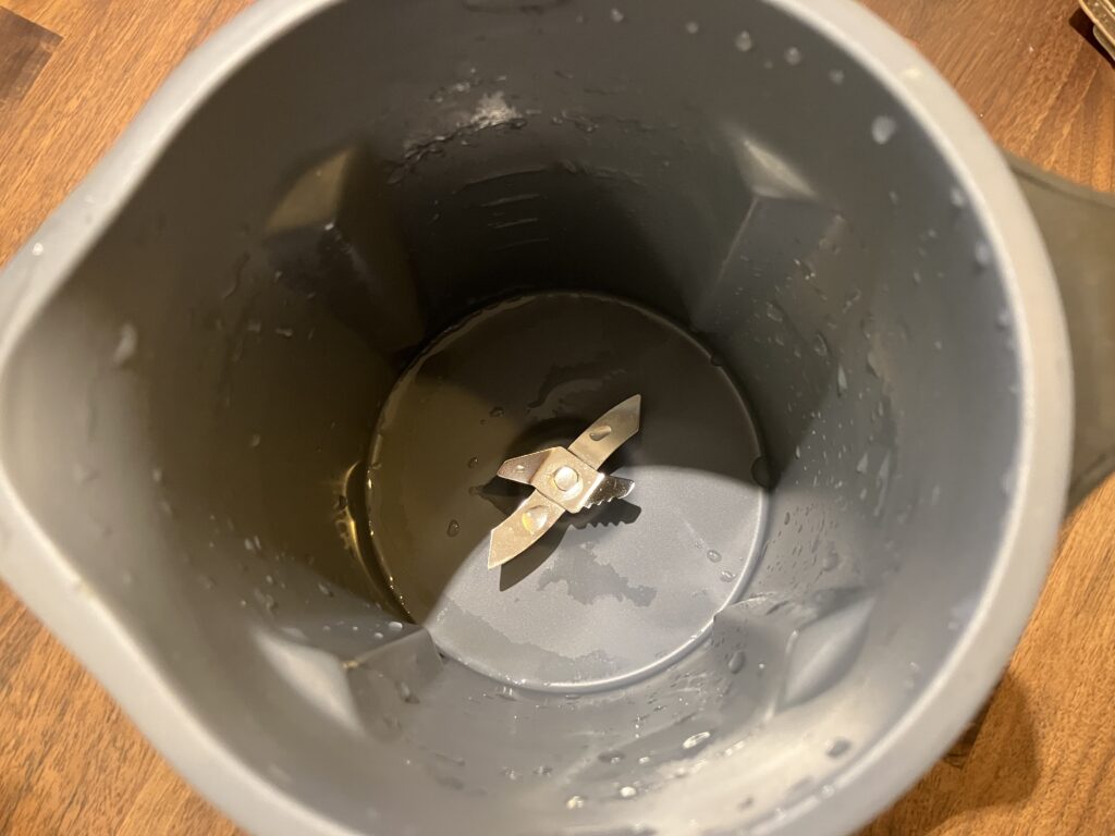 購入した当初は水でJUICE&CLEANモードを使っていたが、それだと汚れが残ることが。しかし、調理後すぐ給湯器を高温(60℃)にして、すすぎ洗い+JUICE&CLEANモードをかければ、大体の汚れが落ちてくれる。油分や粘性が高いスープで汚れが残った時は、気になる箇所をブラシでこすればOK。