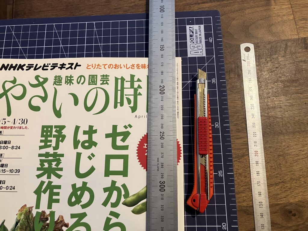 まず手始めに取り出したのは、園芸雑誌。2015年のものだが、内容が充実しているので捨てられずにいた。切り裂くのは忍びないが、雑誌の収納スペースが限界を越えているので、思い切ってカッターで切っていく。